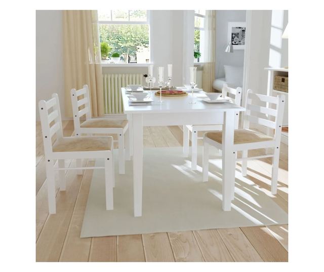 Ta komplet, ki vsebuje 4 klasično oblikovane lesene jedilne stole, se bo odlično podal v vašo jedilnico ali kuhinjo.