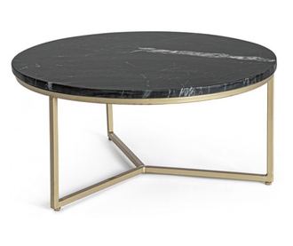 Material mizne plošče: Marmor. Material okvirja/nog: Jeklo z akrilnim premazom. Dimenzije: Premer 37,5 cm x Višina 41 cm. Barva mizne plošče: Črna. Barva okvirja/nog: Zlata. Klubska mizica Prescott ima očarljiv, rahlo industrijski dizajn, ki prinaša avtentičnost in modernizem v vsak prostor. To klubsko mizico bodo zagotovo občudovali tisti, ki imajo radi spektakularno kombinacijo trdnega, trpežnega jekla in visokokakovostnega marmorja. Prefinjena kombinacija črne in zlate je klasična in vedno moderna ter prinaša eleganco v vsako okolje, kjer se cenita popoln slog in dober okus.
