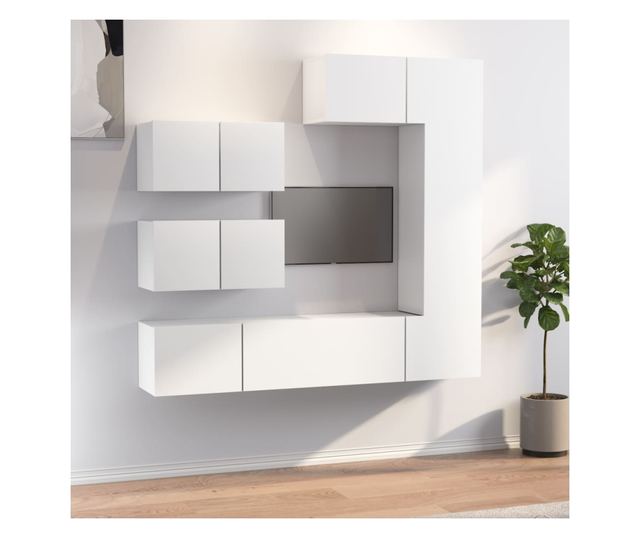 Ta klasičen set TV omaric je zasnovan tako, da bo s svojim modernim a praktičnim dizajnom osrednja točka vaše sobe.