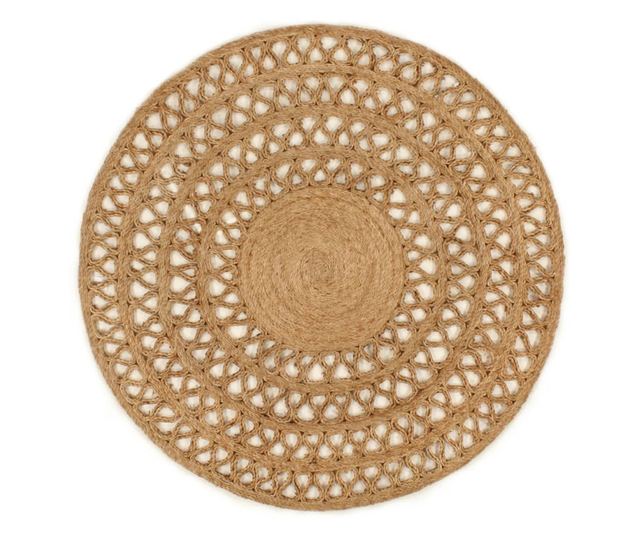 Dodajte svojemu notranjemu prostoru naraven pridih s tem klasičnim pletenim preprogo iz jute! Je popolna izbira za dekoracijo vaše sobe, hkrati pa ščiti tla.