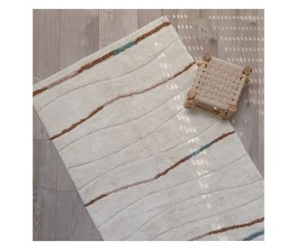 Prepustite se edinstvenemu dizajnu s tepihom Serena, ki ima valovite linije v naravnem bombažnem odtenku, bež barvi, poudarjeni z obrobljenimi linijami, oblikovanimi v nežnih odtenkih karamele, bež in zelene. Ne boste se mogli upreti karamelnim in bež pletenicam, ki krasijo robove preproge. Serena bo popolna v otroški sobi in bo zagotovila prijetne igralne urice! S to preprogo boste mirni in pomirjeni: njen naravni material ni le certificiran z OEKO-TEX, ampak je tudi pralen v pralnem stroju! Pravimo ja!