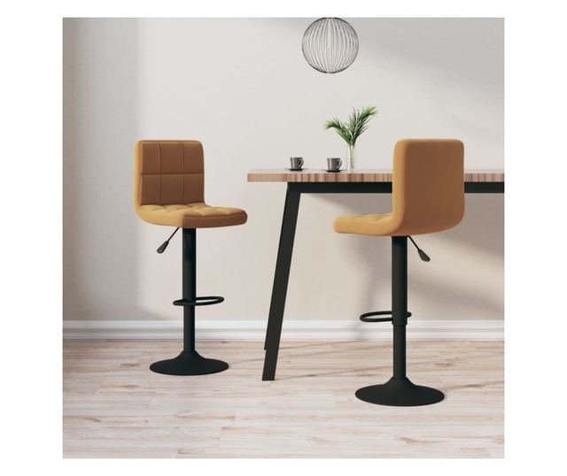 Barski stoli, 2 kosa, rjavi, žamet