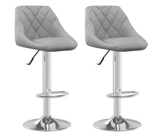 Ti barski stoli so oblazinjeni z mehkim žametom za optimalno udobje sedenja. Kromirano jekleno ogrodje zagotavlja visoko trdnost, vgrajen naslon za noge pa dodatno udobje. Zahvaljujoč plinskemu mehanizmu so ti barski stoli nastavljivi po višini in popoln dodatek vsakemu funkcionalnemu baru ali jedilnici. Prav tako se vrtijo za 360 stopinj za veliko fleksibilnost.