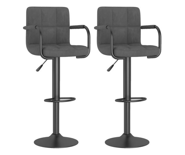Ti barski stoli so oblazinjeni z mehkim žametom za optimalno udobje. Prašno lakirano jekleno ogrodje zagotavlja trdnost, vgrajen naslon za noge pa dodatno udobje. Plinski mehanizem omogoča nastavitev višine teh barskih stolov, zaradi česar so popolni za vsak bar ali jedilnico. Prav tako se vrtijo za 360 stopinj za večjo prilagodljivost.
