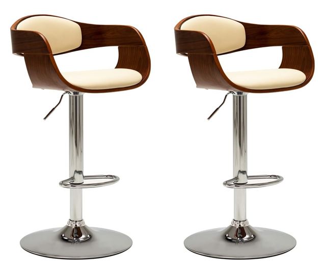 Barski stoli, 2 kosa, kremni, upognjen les in umetno usnje