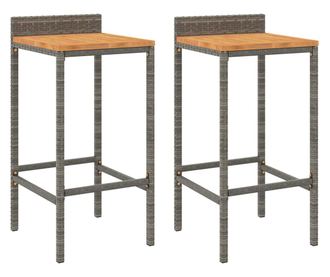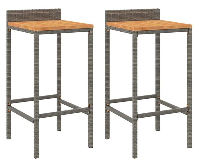 Barski stoli, 2 kosa, sivi, poli ratan in trden akacijev les