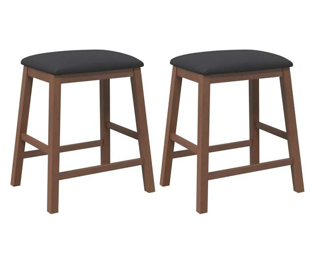 Barski stoli z blazinami 2 kosa masiven kavčukovec rjave barve