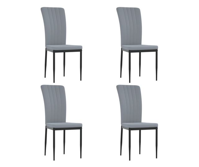 Jedilni stoli, 4 kosi, svetlo sivi, žamet