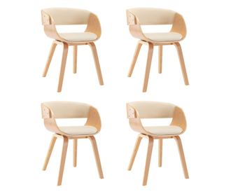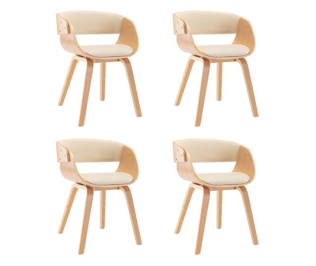 Jedilni stoli, komplet 4, kremni, upognjen les in umetno usnje