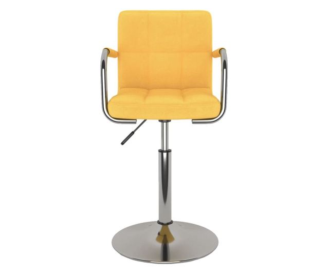 Oblazinjen je v trpežno blago za udobje, stol pa ima kromirano jekleno ogrodje za robustnost in stabilnost. Plinski dvižni mehanizem omogoča nastavitev višine, zaradi česar je popoln dodatek vsakemu funkcionalnemu baru ali jedilnemu prostoru. Prav tako se vrti za 360 stopinj za fleksibilnost.