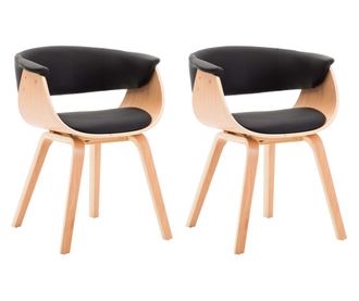 Kuhinjski stoli 2 kosa, črna, upognjen les in umetno usnje