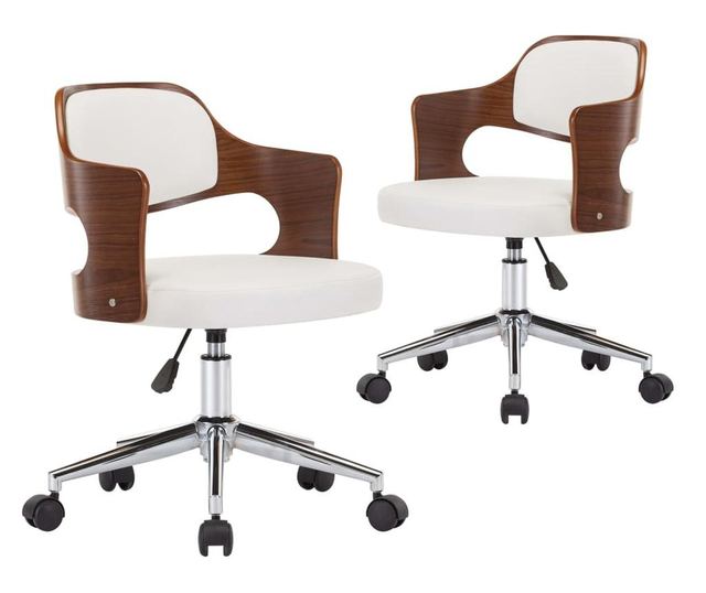 Vrtljivi stoli, 2 kosa, beli, upognjen les in umetno usnje