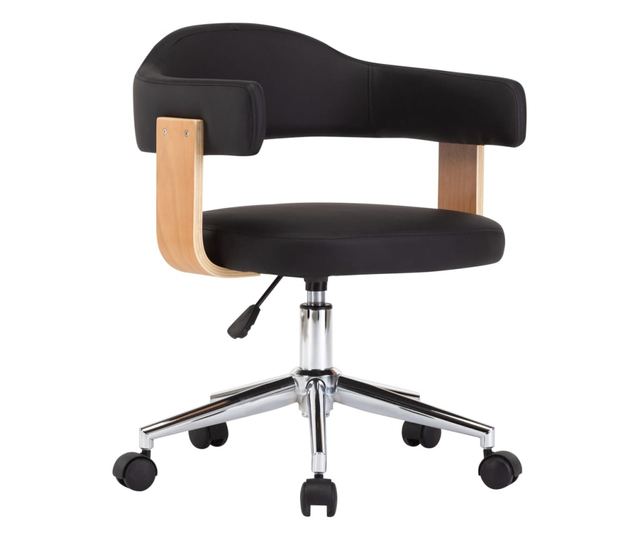 Črn vrtljiv kuhinjski stol iz ukrivljenega lesa in umetnega usnja