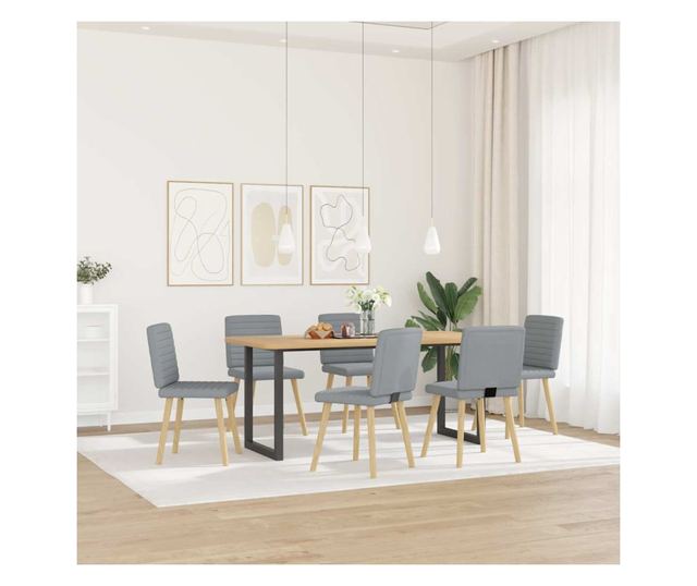 Jedilni stoli, komplet 6, svetlo sivi, blago