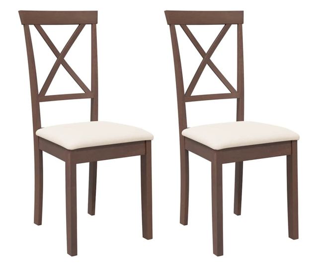 Jedilni stoli z blazinami, 2 kosa, masiven kavčukovec, rjava