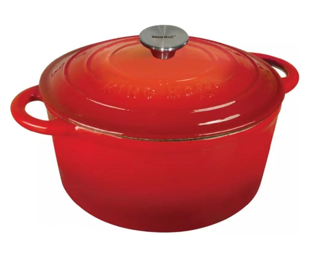 Emajliran litoželezni lonec s pokrovom 24 cm, 4 l Kinghoff KH1529, rdeč