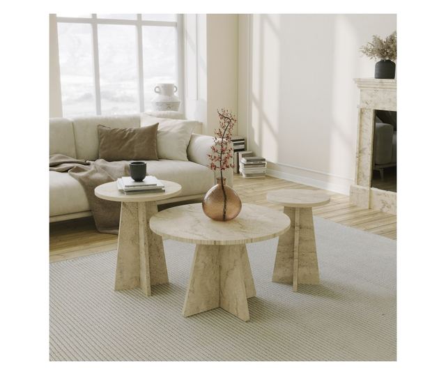 Nadgradite svoj bivalni prostor z našim setom Coffee Table v barvi travertina in izkusite razliko, ki jo lahko naredi v vašem domu. Naročite svojega še danes in dvignite svoj notranji dizajn na višjo raven.