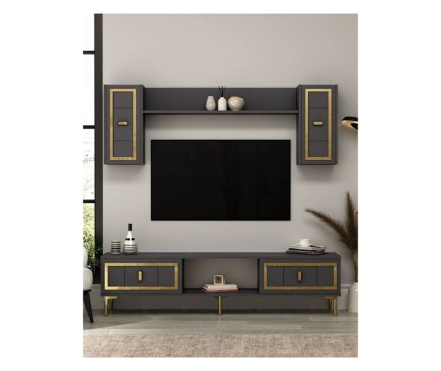 TV regal 412, antracit, zlata