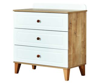 Z širino 80 cm, višino 91 cm in globino 45 cm ta komoda ponuja dovolj prostora za shranjevanje vseh vaših oblačil in dodatkov. Prostorni predali nudijo dovolj prostora za organizirano in lahko dostopno shranjevanje vaših stvari, kar jo naredi praktičen in funkcionalen kos pohištva.