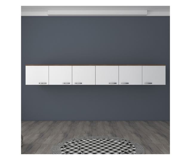 Dodajte pridih elegance in funkcionalnosti v katero koli sobo z našo stensko omaro. Elegantna zasnova in sodobna barvna kombinacija oreha in bele se bosta brezhibno zlili z obstoječim pohištvom ter ustvarili usklajen in eleganten videz.