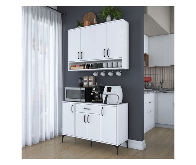 Z modernim dizajnom in čisto belo barvo bo ta kavna polica takoj popestrila videz vaše kuhinje ali pisarniškega prostora. Številne police nudijo dovolj prostora za vse vaše kavne potrebščine, od skodelic do kavnih kapsul, tako da je vse na dosegu roke in lepo organizirano.
