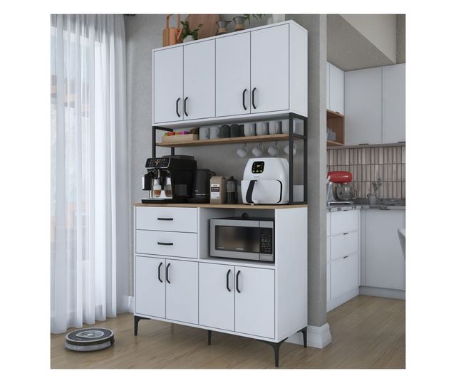 Z številnimi policami in dodatnim prostorom za shranjevanje je ta omara kot nalašč za shranjevanje vseh vaših potrebščin na enem priročnem mestu. Poslovite se od nereda in pozdravite lepo urejen dom.