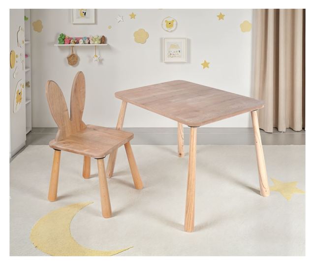 Z zaobljenimi robovi in gladkimi površinami je ta garnitura zasnovana z mislijo na varnost vašega otroka. Stoli so popolne višine, da lahko malčki udobno sedijo, kar spodbuja dobro držo in pravilne sedežne navade.