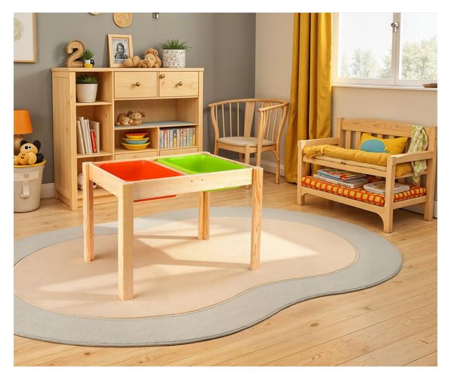 Zamislite si veselje na obrazu vašega otroka, ko bo sedel za svojo lastno mizo, pripravljen na neskončne ure ustvarjalne igre in učenja. Ta miza je popolno prizorišče za čajanke, umetniške projekte in domače naloge, kar ustvarja spomine, ki bodo trajali vse življenje.