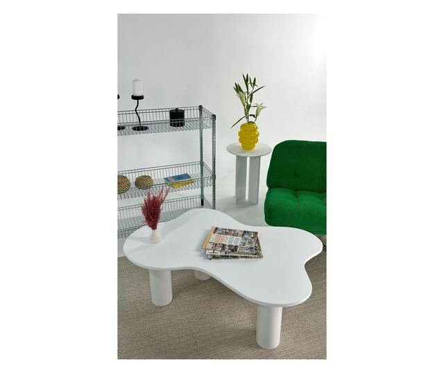 S to čudovito belo kavno mizico spremenite svojo dnevno sobo v eleganten in vabljiv prostor. Ta eleganten kos je izdelan iz 100 % MDF-ja z gladko površino, lakirano s poliuretanskim lakom, ki izžareva prefinjenost in čar.