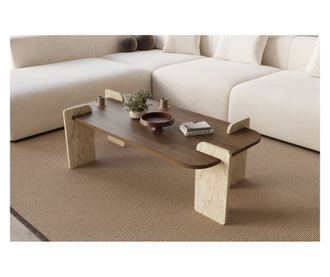 Klubska mizica 637, travertin, oreh