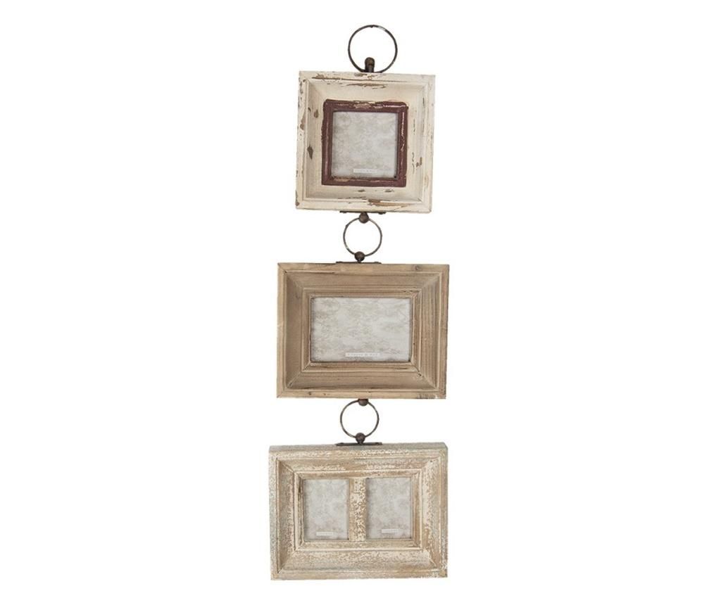 Kremno rjav lesen stenski okvir za fotografije v starinskem slogu 24x4x78 cm